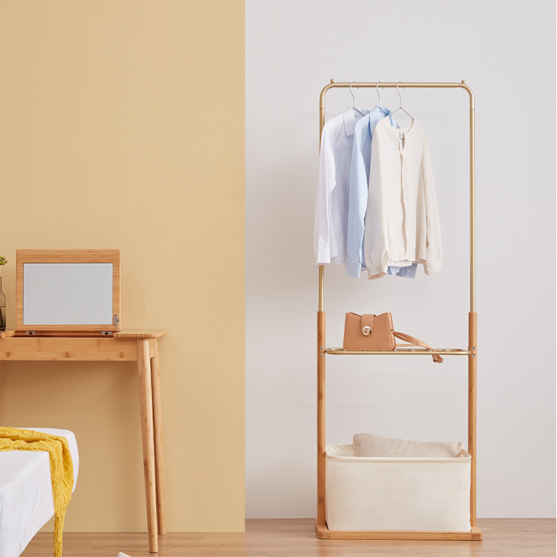 Ce portemanteau élégant est tout ce dont vous avez besoin. Fabriqué en bambou et en métal, il allie harmonieusement modernité et naturel. Sa grande capacité de charge vous permet de ranger et d'organiser vos sacs, manteaux et vestes. Une étagère supplémentaire peut accueillir vos chapeaux et autres effets personnels.