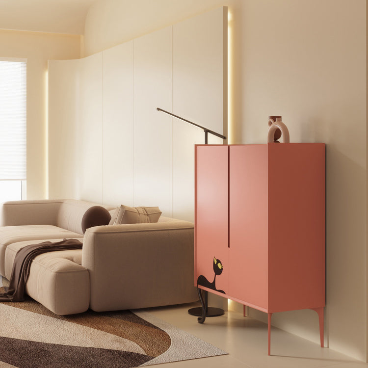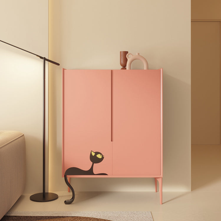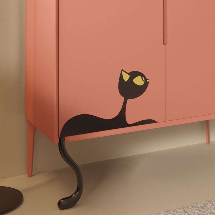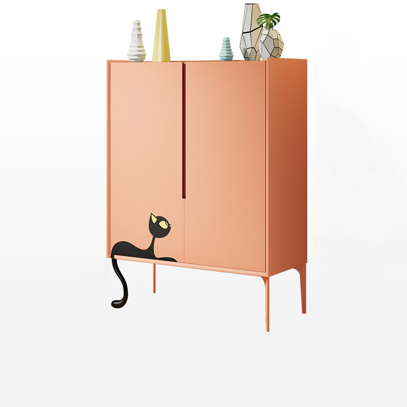 Chaussures, chaussures plates et talons sont rangés dans quatre pièces différentes. Si vous ne trouvez jamais toutes vos chaussures, il est temps de les organiser avec une armoire comme celle-ci. Ce casier dispose de quatre étagères derrière la porte, ce qui vous permet de ranger facilement baskets, talons et autres accessoires. Cette armoire sobre est fabriquée en imitation bois avec une finition orange/blanche et des motifs de chats sur les pieds pour un style mignon et unique.