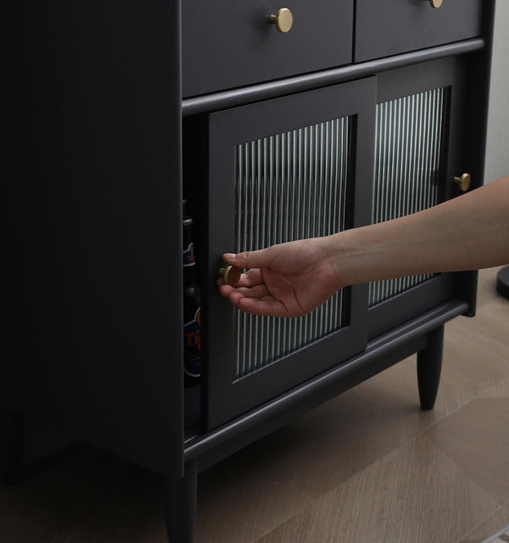 Buffet buffet scandinave ADELAIDE en bois massif. Ce design simple et moderne s'intègre parfaitement à la maison, au complexe hôtelier, au restaurant ou à tout autre espace de vie. Idéal comme meuble à thé ou meuble de rangement pour la cuisine grâce à son style nordique.