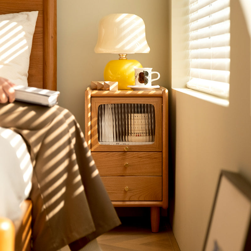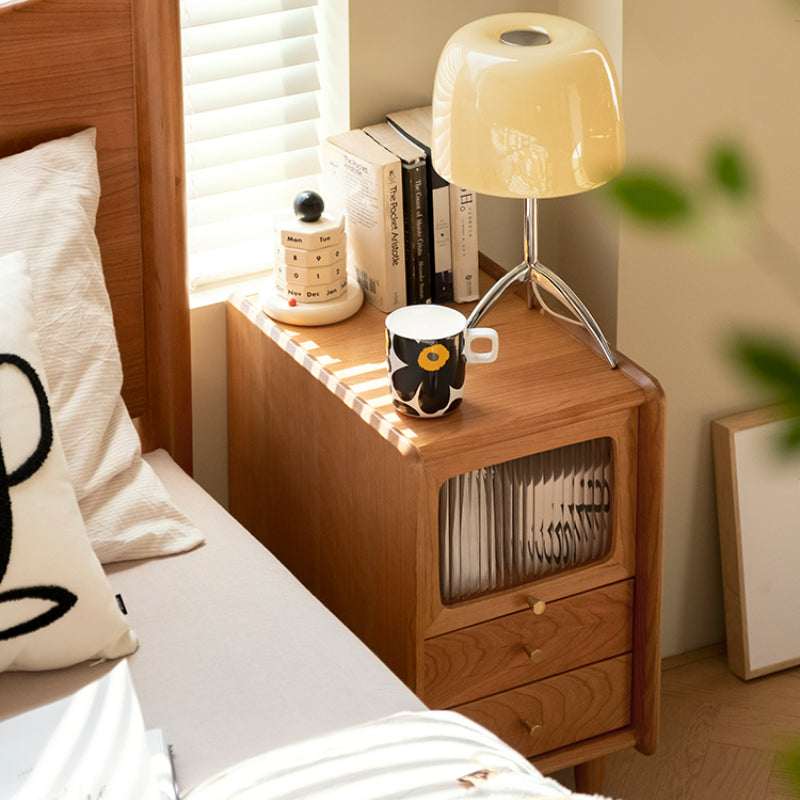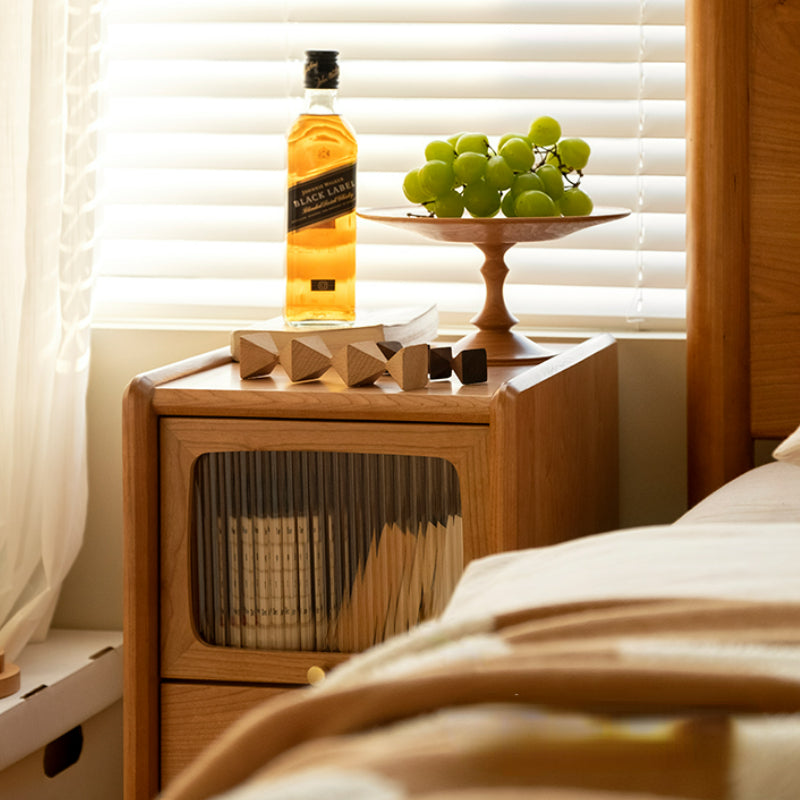 Cette table de chevet en bois massif, d'une largeur de 2 choix, convient à une variété de types d'appartements, lorsque vous posez le téléphone portable, une tasse d'eau, un livre, des verres et d'autres petits objets avant d'aller au lit, plus d'encombrement à côté de l'oreiller, elle est également équipée de tiroirs, le premier étage est une porte en verre Changhong, facile à ouvrir, peut contenir des objets légèrement plus grands, cette table de chevet dans son ensemble est fabriquée en bois de cerisier nord-américain de haute qualité, couleur vive, texture élégante, durable, est un meuble essentiel pour une chambre confortable.