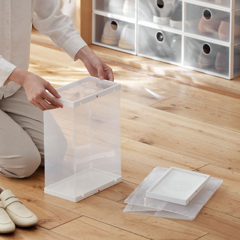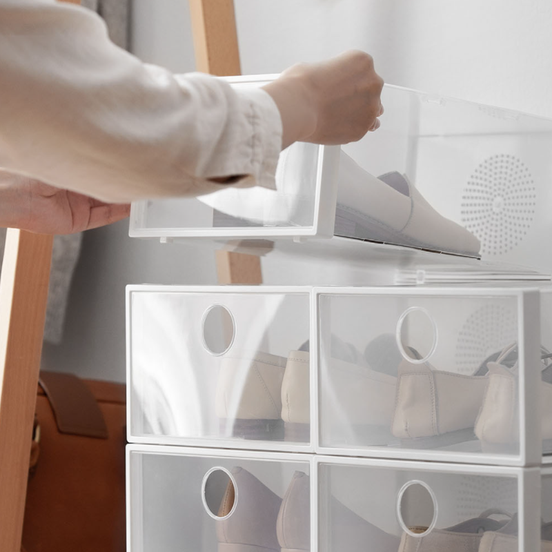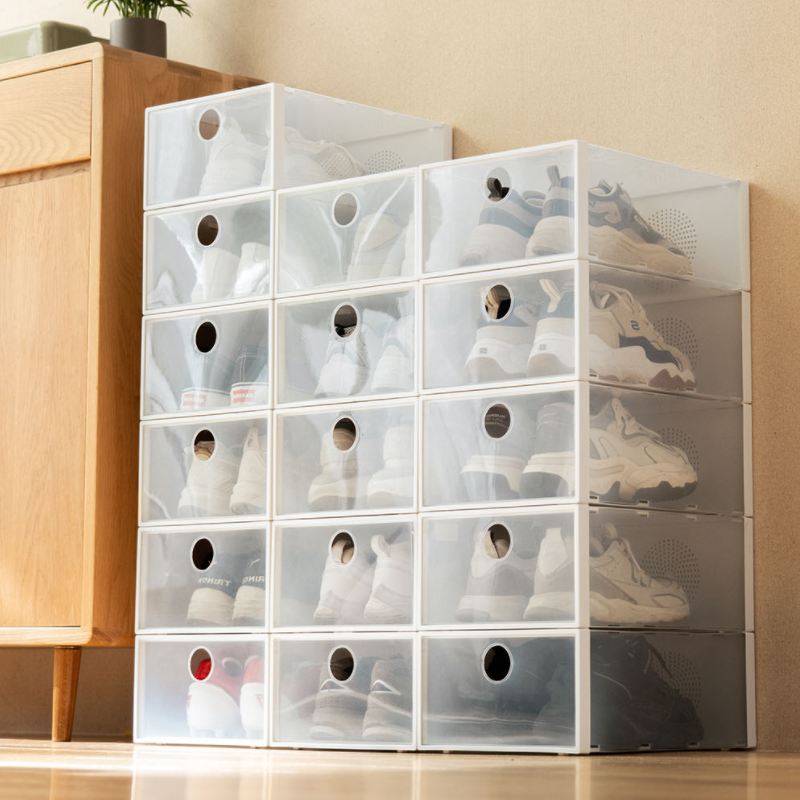Ce coffre de rangement est fabriqué en plastique transparent de haute qualité, parfaitement visible. Empilable, il facilite l'organisation et le rangement, pour une entrée propre et ordonnée. Il est doté de trous d'aération pour assurer la circulation de l'air et prévenir les mauvaises odeurs. Des fenêtres transparentes permettent de visualiser les articles et l'empilage de plusieurs unités optimise le rangement.
