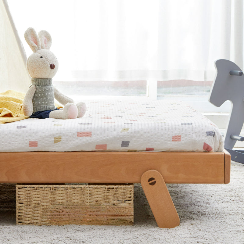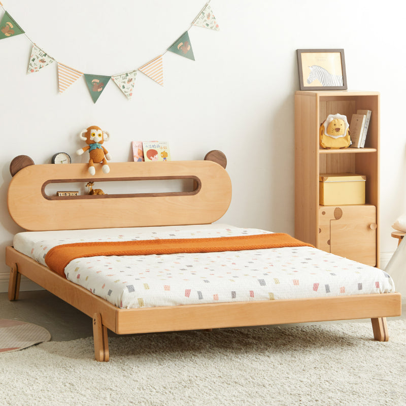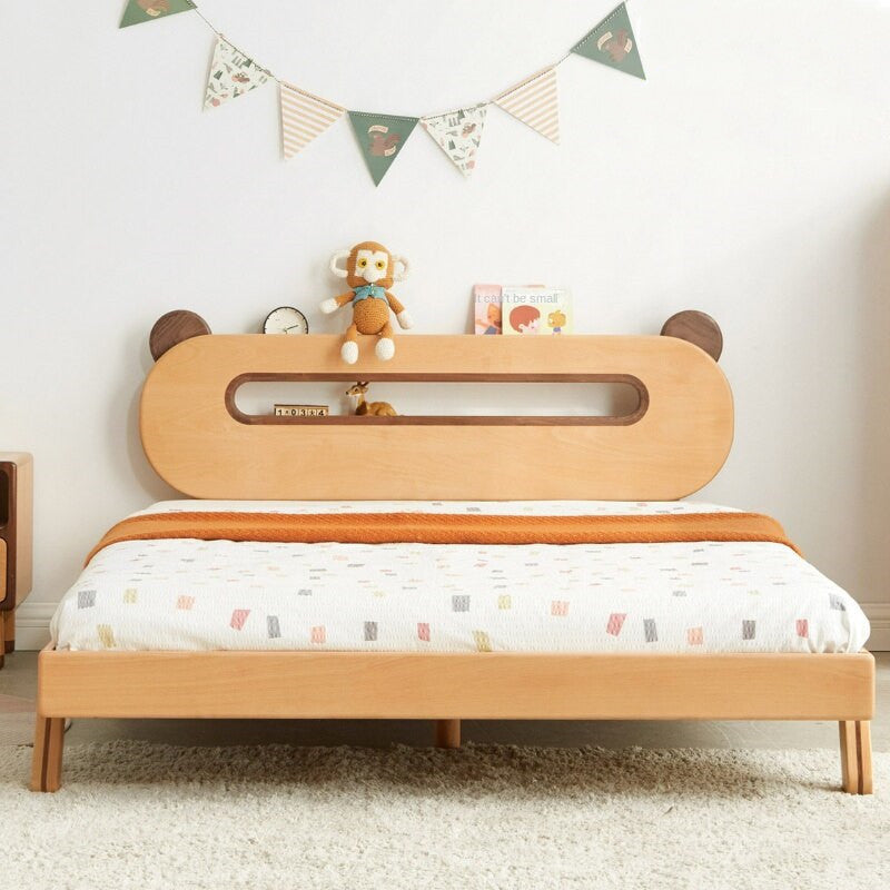 Ce lit est conçu pour les enfants. Sa tête de lit en forme d'ourson est creuse et son anneau intérieur est équipé d'une veilleuse de sécurité, qui s'allume d'un simple effleurement. Elle procure à l'enfant un sentiment de sécurité, favorise son autonomie dès son plus jeune âge et rassure les parents. Le cadre principal est en hêtre importé d'Europe. Ce bois est robuste et présente une belle texture. Sa hauteur est idéale pour les enfants qui montent et descendent facilement, sans risque de chute. Les pieds du lit sont trapézoïdaux. Le centre du lit est également équipé de deux pieds de soutien stables et stables. Que ce soit pour danser ou sauter, le lit ne risque pas de s'effondrer.