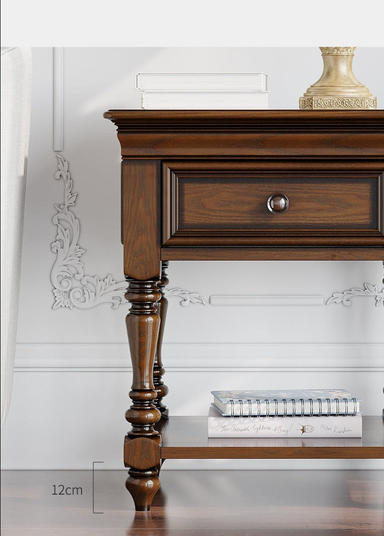 Table de chevet ALICE SHERATON, design allemand. Table d'appoint ALICE en bois massif, de style campagnard américain, idéale dans un coin de salon, comme meuble d'appoint pour canapé, ou comme petite table basse. Meuble de salon en frêne de qualité FAS, peinture à l'eau sans formaldéhyde, plateau en bois massif.