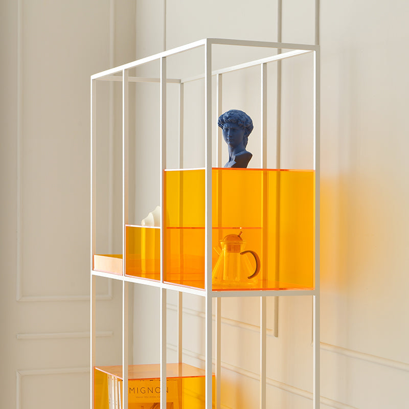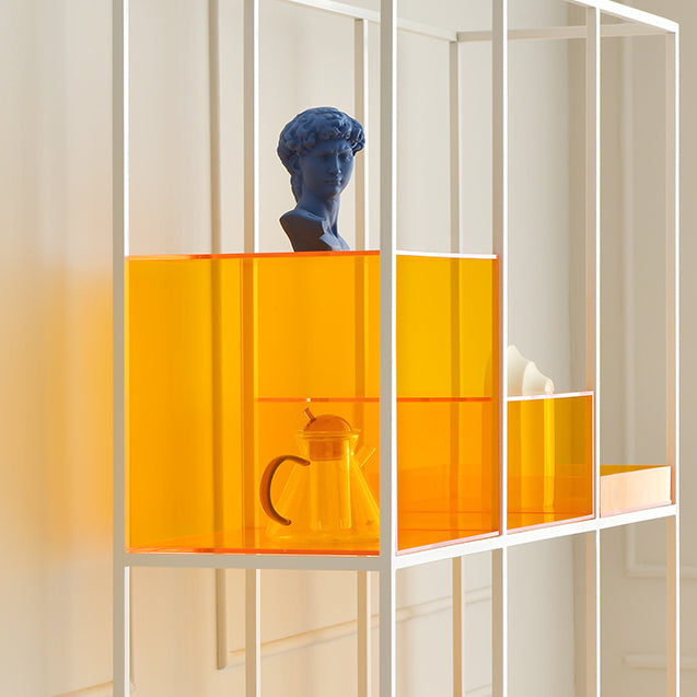 Bibliothèque triple 9 Stories, grande étagère industrielle, simple, stable et durable. Imprégnée d'un style industriel, elle offre un équilibre chaleureux entre l'acrylique coloré et le métal blanc. Nous avons associé des cadres métalliques pour créer des étagères robustes et spacieuses, idéales pour exposer ou ranger vos affaires. Vous bénéficierez ainsi d'un vaste espace de rangement ouvert. Sa construction robuste, idéale pour accueillir vos livres et objets de décoration préférés, en fera un meuble incontournable dans toutes les pièces de votre maison.