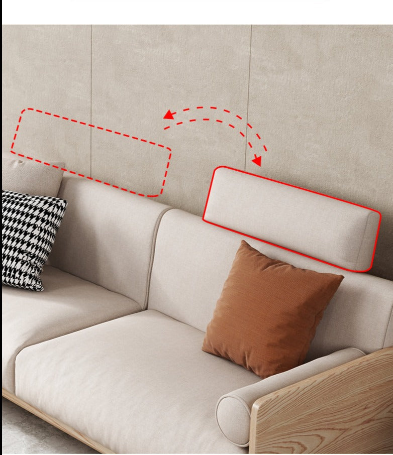 Canapé Avery en bois massif avec coussin amovible en tissu de style japonais