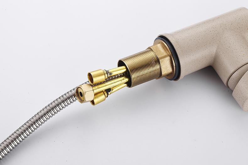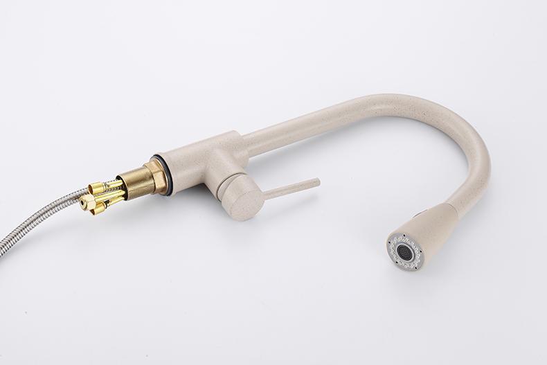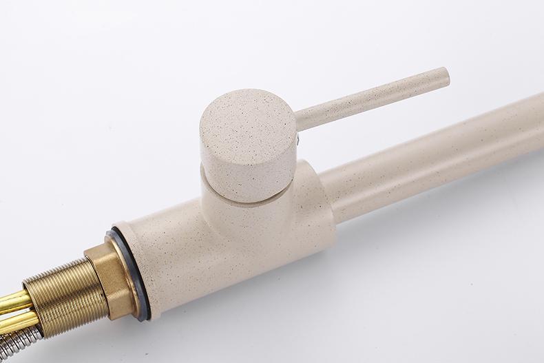 La robinetterie Blaise s'harmonise parfaitement avec le design intérieur monochrome contemporain de la maison. Cette œuvre d'art minimaliste aux tons nude mats est équipée d'un robinet extensible pour un lavage facile. Installation possible.
