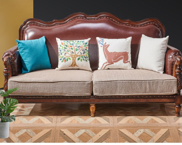 Canapé américain en bois massif BOSTON HILTON avec accoudoirs 1+2+3 et assise en cuir et tissu