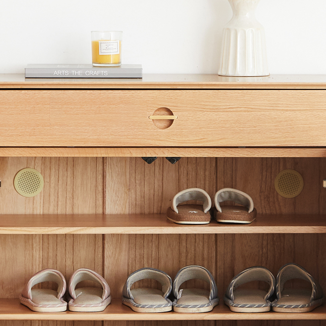 Rangez vos chaussures en toute discrétion grâce au meuble à chaussures Brielle. Fabriqué en bois robuste, il est facile à assembler et dispose d'un grand tiroir pour organiser vos essentiels. Le meuble à chaussures Brielle est une solution sophistiquée pour tous vos besoins de rangement.