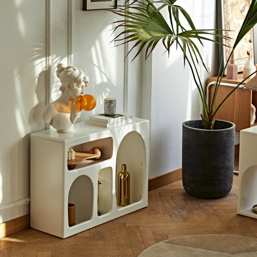 La bibliothèque design Chapple présente une belle finition granuleuse blanche sur un panneau de fibres à densité moyenne de haute qualité. Elle offre un espace de rangement idéal pour vos collections, telles que livres, sacs, vases, etc. Cette bibliothèque de rangement polyvalente est idéale pour la maison, le bureau, la buanderie, la chambre, la cuisine, le garage ou toute autre pièce. De plus, ses bords sont lisses pour éviter les coupures, surtout si vous avez un enfant à la maison, ce qui en fait une bibliothèque idéale.