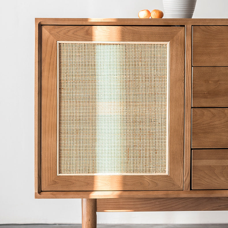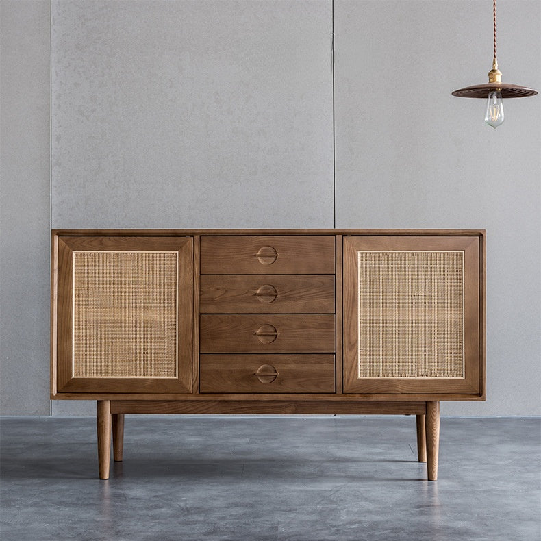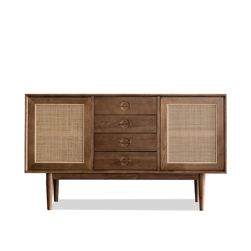 Ce buffet polyvalent à 4 tiroirs est doté de portes et tiroirs coulissants à lattes pour une allure moderne dans votre salle à manger, votre salon ou votre bureau. Sa finition rustique et patinée s'harmonise avec votre décoration moderne du milieu du siècle. Au centre, ses quatre tiroirs coulissants sur glissières à billes métalliques offrent un espace généreux pour les ustensiles, les serviettes et les appareils multimédia. On apprécie également les portes à lattes qui offrent un espace de rangement supplémentaire pour la vaisselle, les DVD et les bouteilles de vin. De plus, ce buffet peut également servir de meuble TV pour votre écran plat.