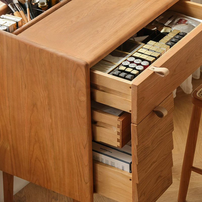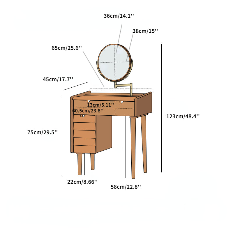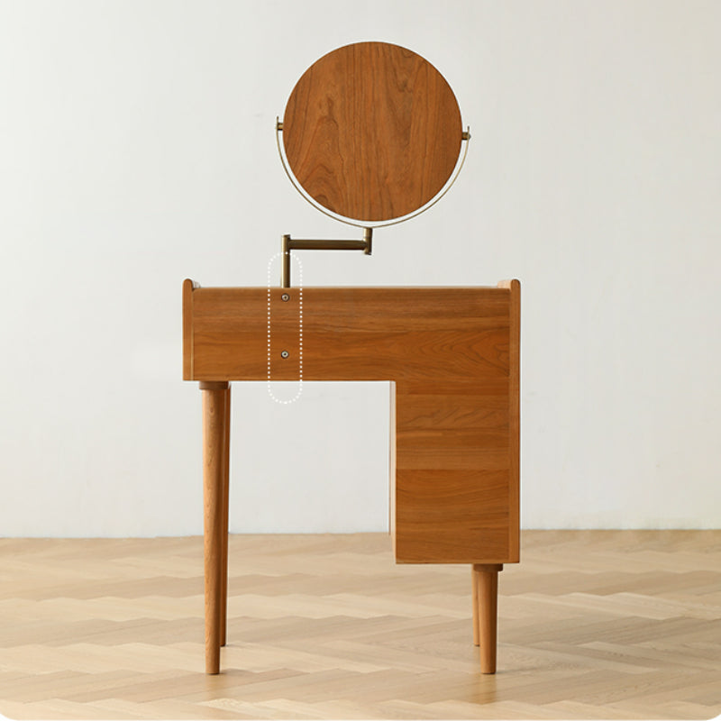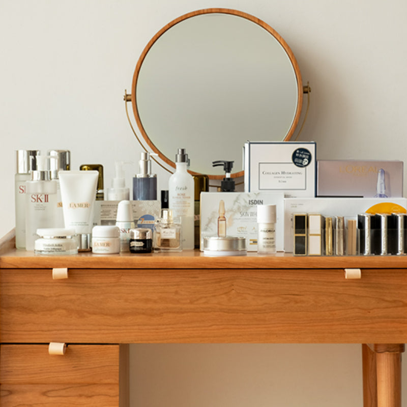 Conçue dans un style vintage, cette commode offre une grande flexibilité d'agencement et une esthétique élégante. Elle offre un grand espace de rangement et une grande intimité, ainsi qu'un miroir pivotant à 360° pour s'adapter à différents angles. Entièrement fabriquée en cerisier de haute qualité, cette coiffeuse est robuste et durable. Ses tiroirs latéraux à trois niveaux permettent de ranger de nombreux objets. Sa poignée en cuir est douce et ferme. Les éléments de la table se combinent pour former de petits bureaux.