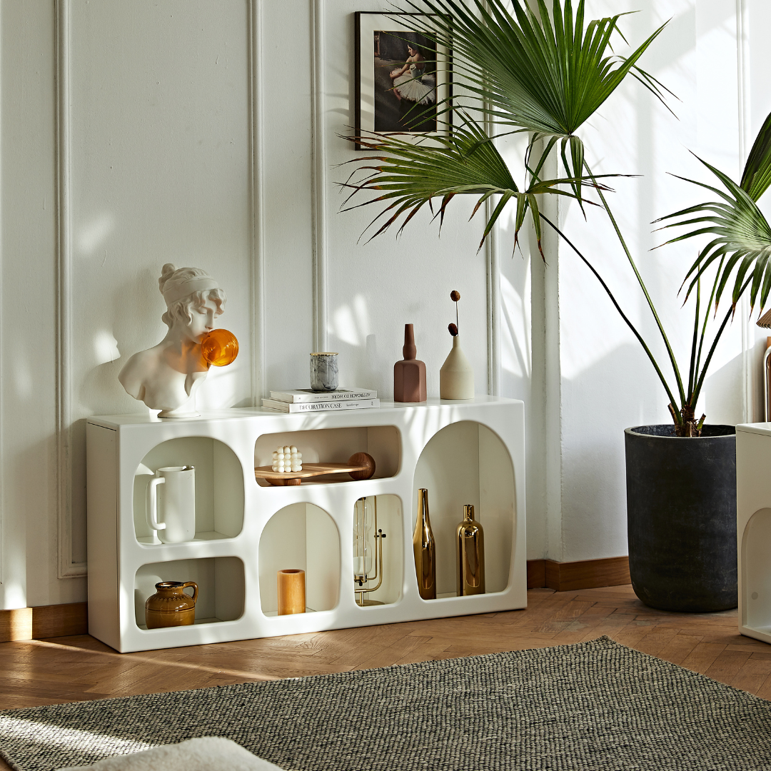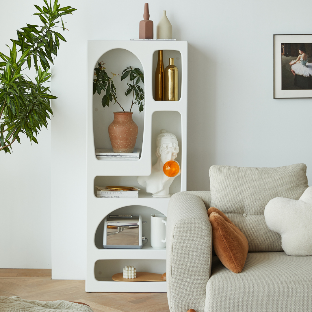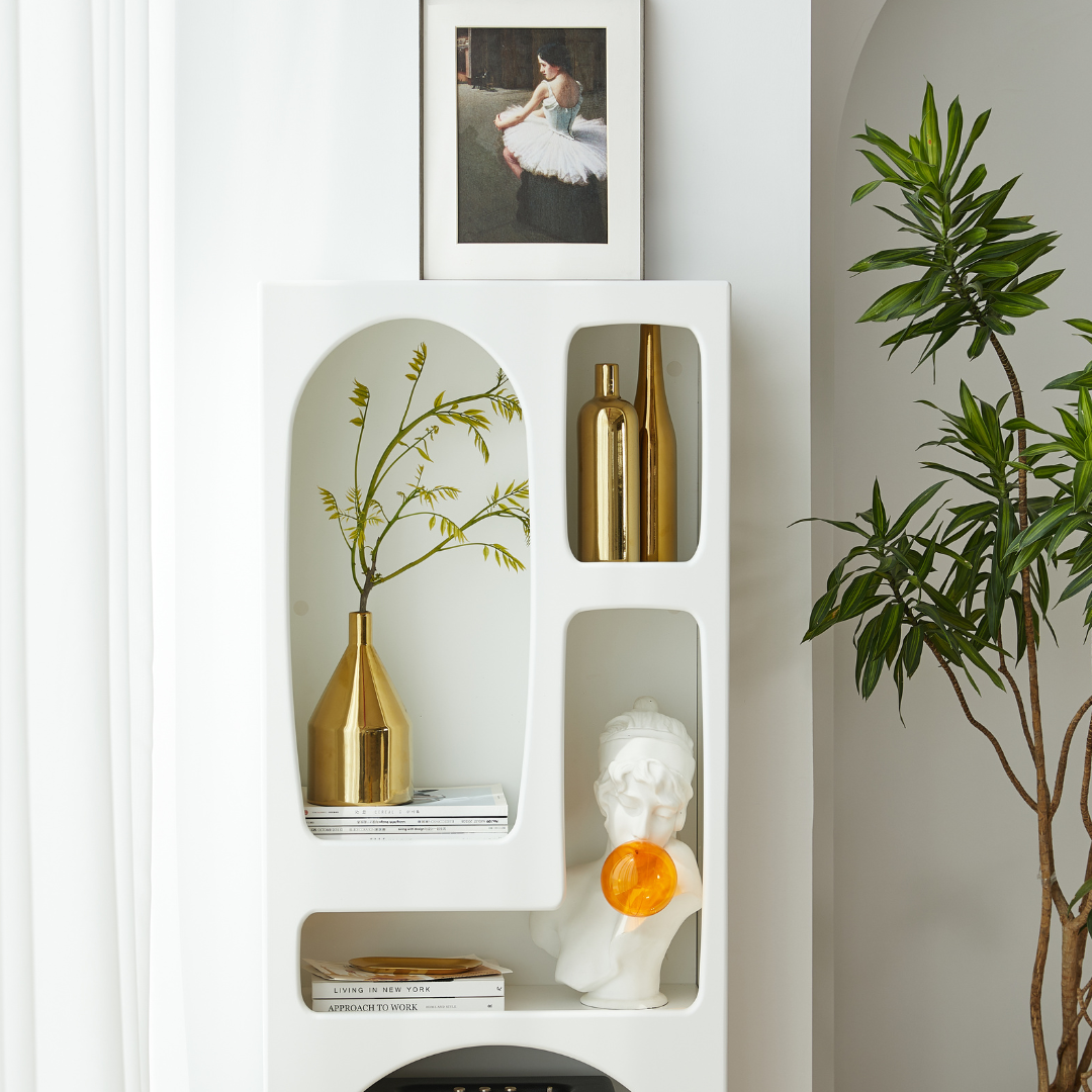 La bibliothèque design Chapple présente une belle finition granuleuse blanche sur un panneau de fibres à densité moyenne de haute qualité. Elle offre un espace de rangement idéal pour vos collections, telles que livres, sacs, vases, etc. Cette bibliothèque de rangement polyvalente est idéale pour la maison, le bureau, la buanderie, la chambre, la cuisine, le garage ou toute autre pièce. De plus, ses bords sont lisses pour éviter les coupures, surtout si vous avez un enfant à la maison, ce qui en fait une bibliothèque idéale.