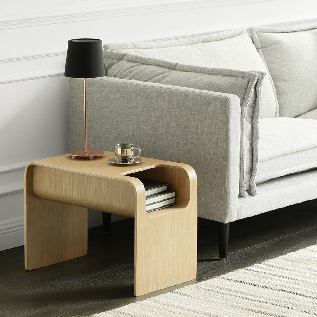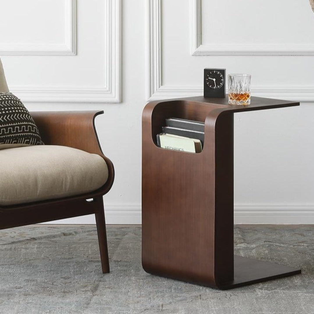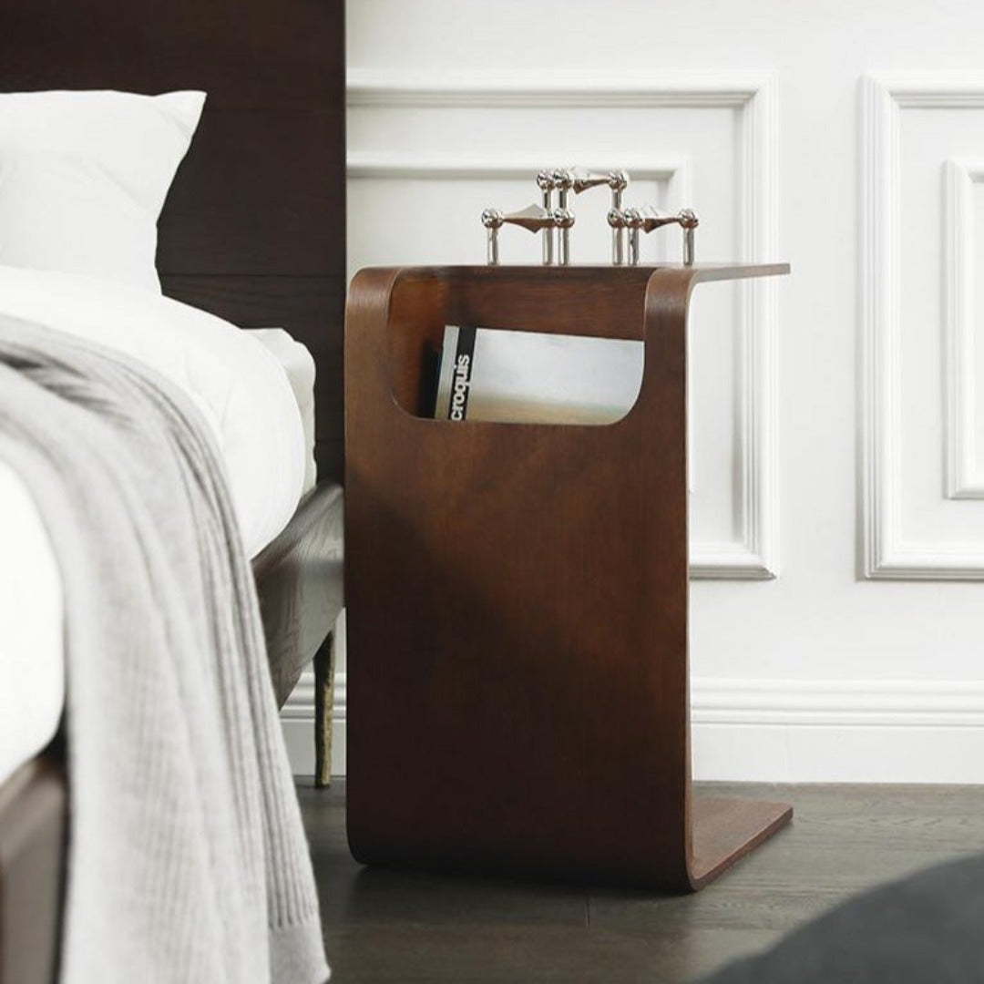 Livrée entièrement assemblée, cette table d'appoint est fabriquée artisanalement en bois d'ingénierie et apporte une touche d'innovation moderne à votre intérieur. Ses angles nets et épurés, associés à une finition naturelle au grain de bois, lui confèrent un charme unique, où que vous la placiez. La couleur profonde de la finition laisse apparaître toutes les variations naturelles du bois, tandis que son design complexe met en valeur l'aspect artisanal de la pièce.