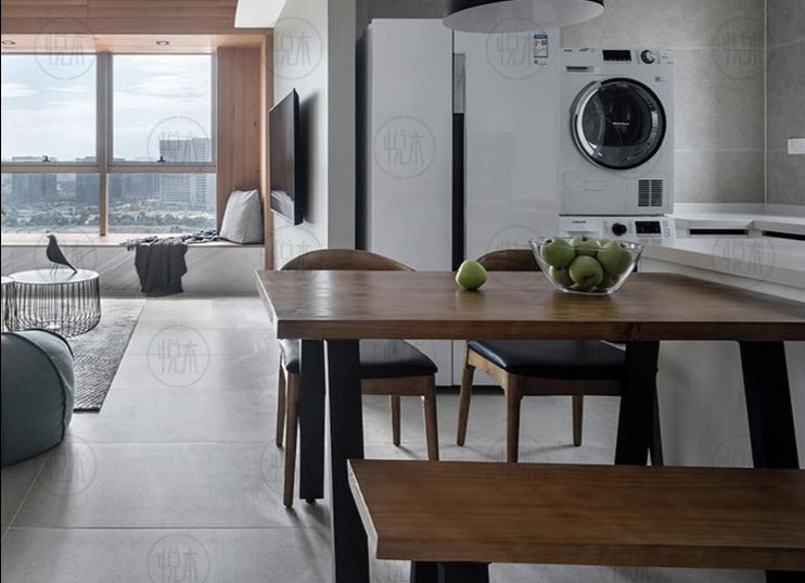 Ensemble table à manger et/ou chaise/banc en fer forgé et bois massif de style rétro nordique COOPER