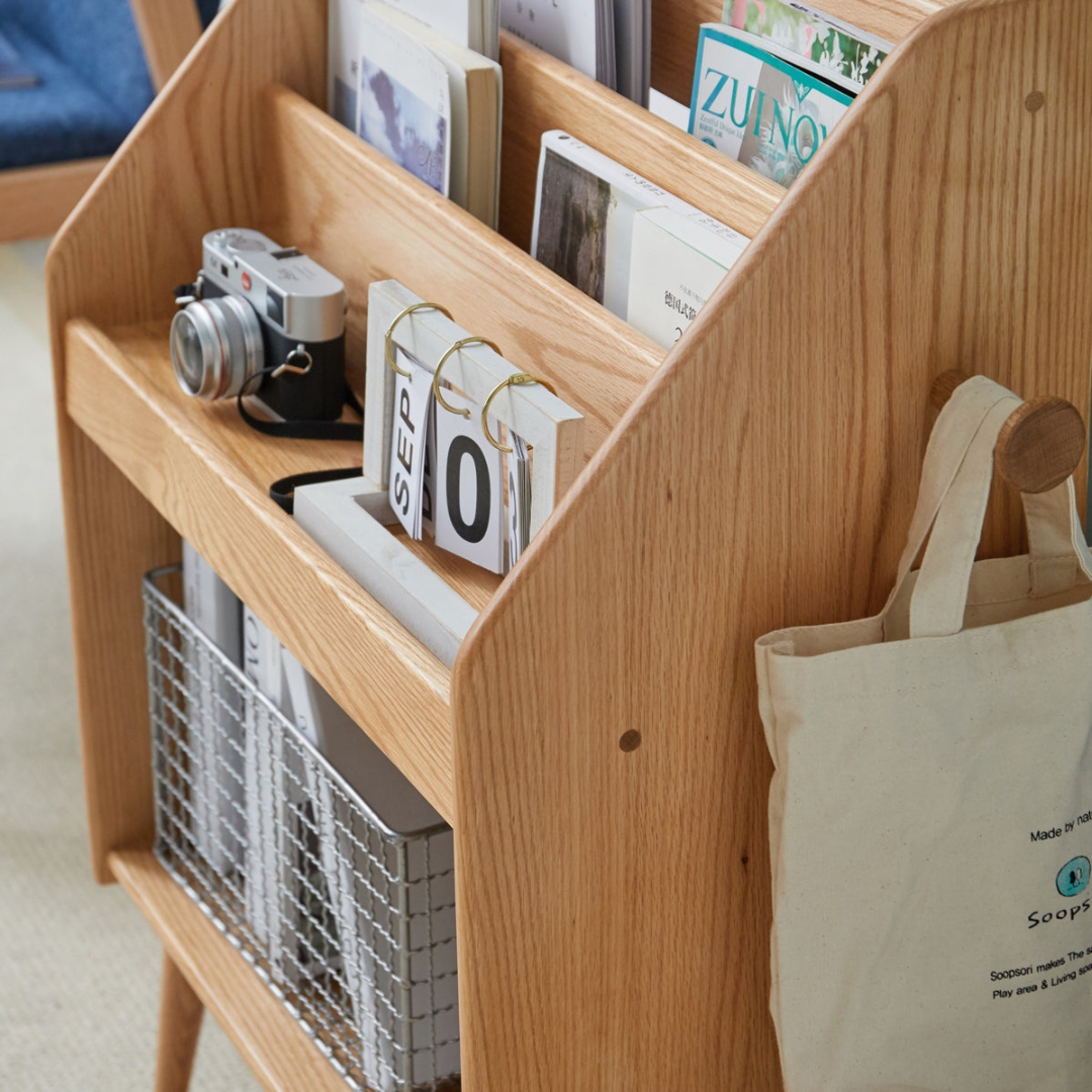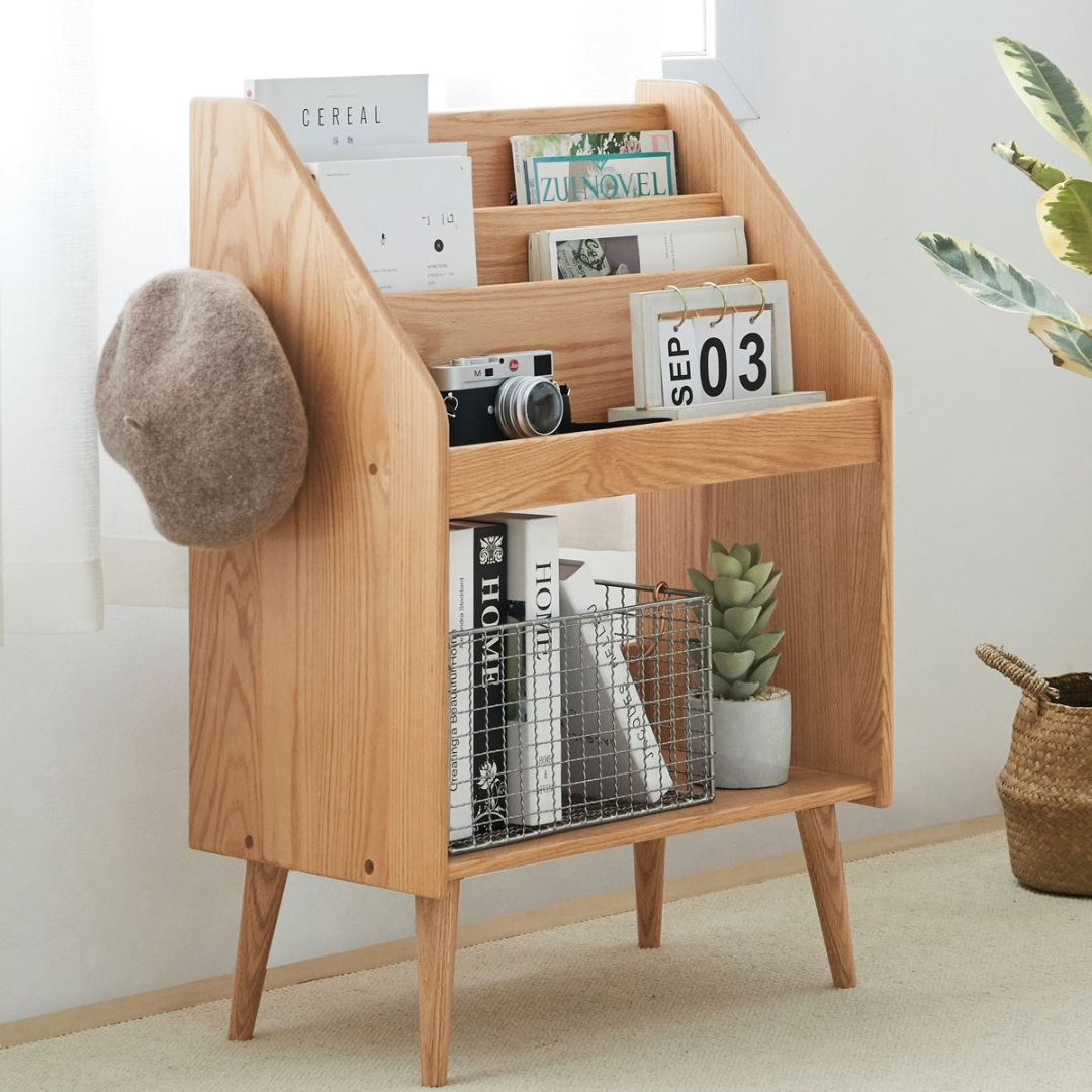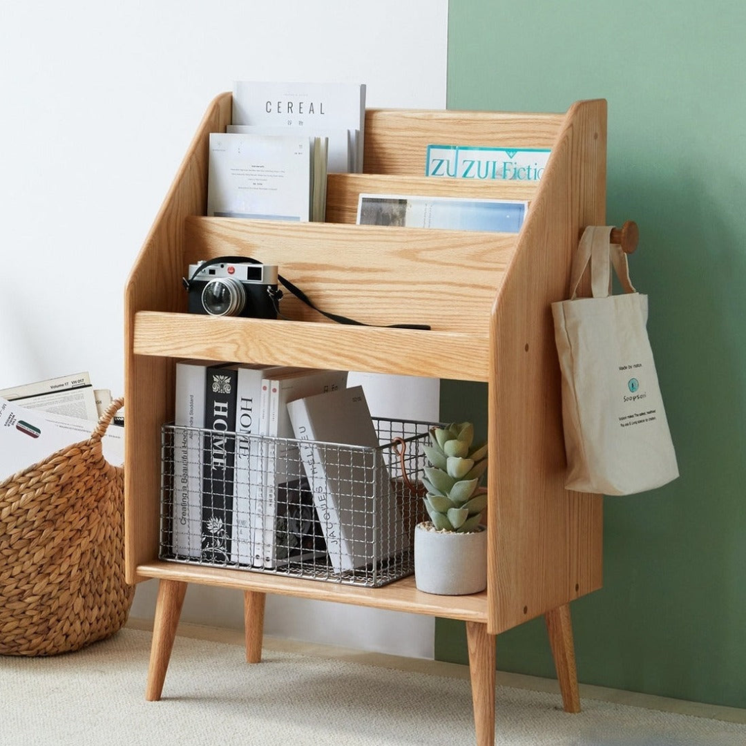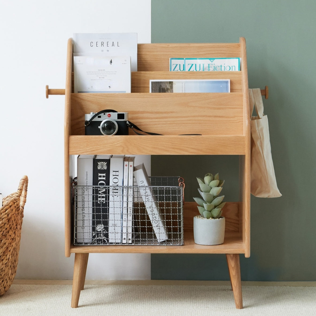 Le moderne est tendance ! Le porte-revues Delailah est parfait pour tout espace de vie élégant et moderne. Son design fin réduit l'encombrement et optimise l'espace, tandis que son cadre ouvert vous offre un aperçu du contenu. Il dispose de trois niveaux pour exposer vos magazines avec style et de deux crochets pour accrocher votre chapeau ou votre sac à main en rentrant du travail.
