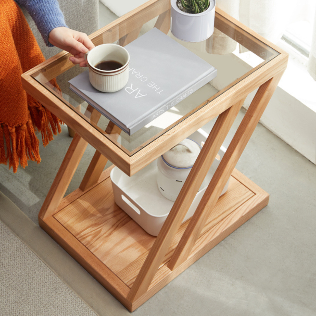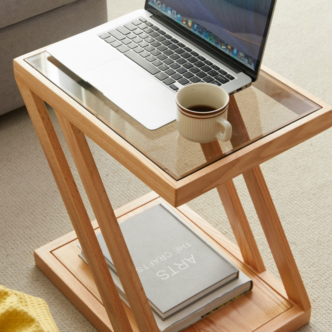 Ajoutez de la couleur à votre salon avec des accessoires attrayants, modernes et fonctionnels, pour le plus grand plaisir de tous. Avec son superbe design industriel moderne et son chêne robuste, notre table en Z s'intègre parfaitement à tout espace de vie. Avec son magnifique plateau en chêne et sa structure en verre, cette table d'appoint apporte une touche sophistiquée à n'importe quel canapé. Que vous l'utilisiez dans le salon ou la chambre, cet accessoire en Z vous permet de créer un espace de travail confortable quand vous en avez besoin.