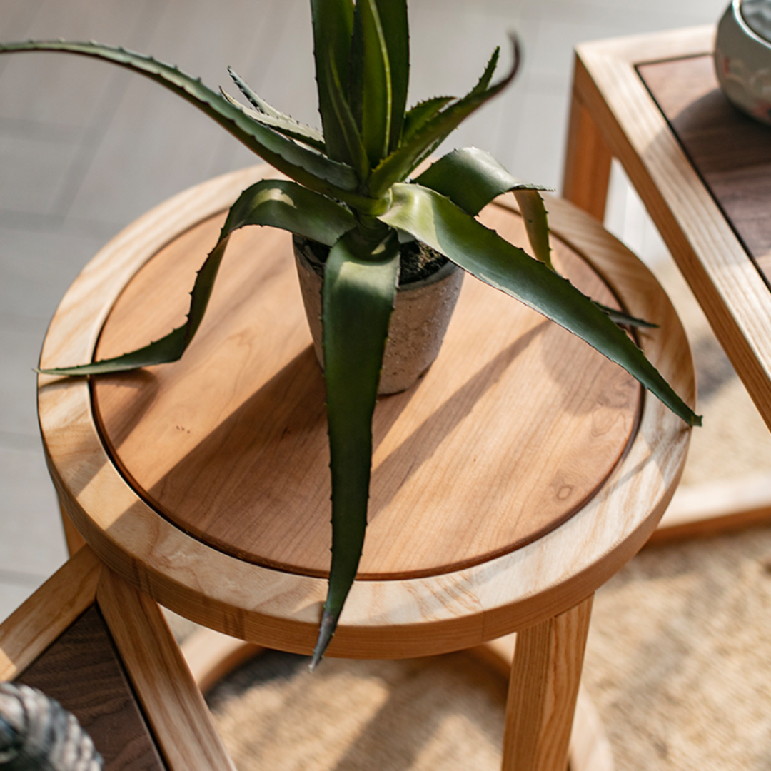 Si vous cherchez une table d'appoint élégante pour votre salon, votre chambre ou tout autre espace de votre choix, celle-ci est faite pour vous. Disponible en trois formes différentes (ronde, carrée et triangulaire), elle est dotée d'une structure en frêne et d'un plateau en noyer noir et cerisier, pour une utilisation durable.