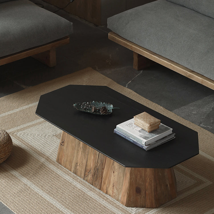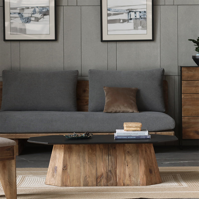 Conçue avec un plateau octogonal reposant sur un piètement en bois massif, cette table basse apporte une touche de luxe et de légèreté du milieu du siècle à votre salon. Fabriquée avec un piètement en pin ancien et un panneau veiné de bois noir, cette magnifique pièce garantit robustesse et durabilité, tout en apportant une touche chaleureuse à votre salon. Chaque pièce est conçue pour votre confort. Une table fonctionnelle idéale pour des moments de détente autour d'un thé ou d'un café en famille ou entre amis.
