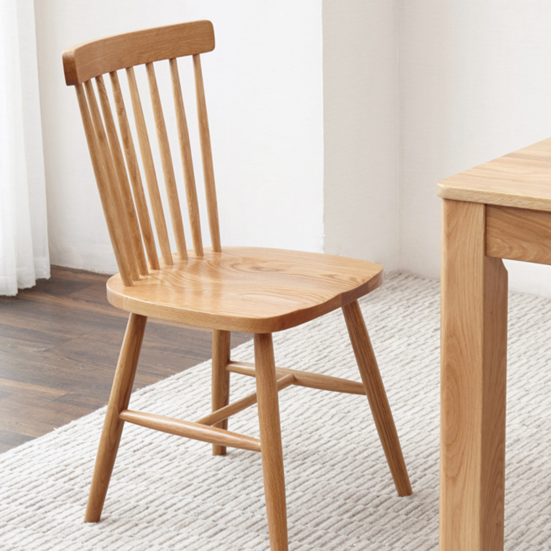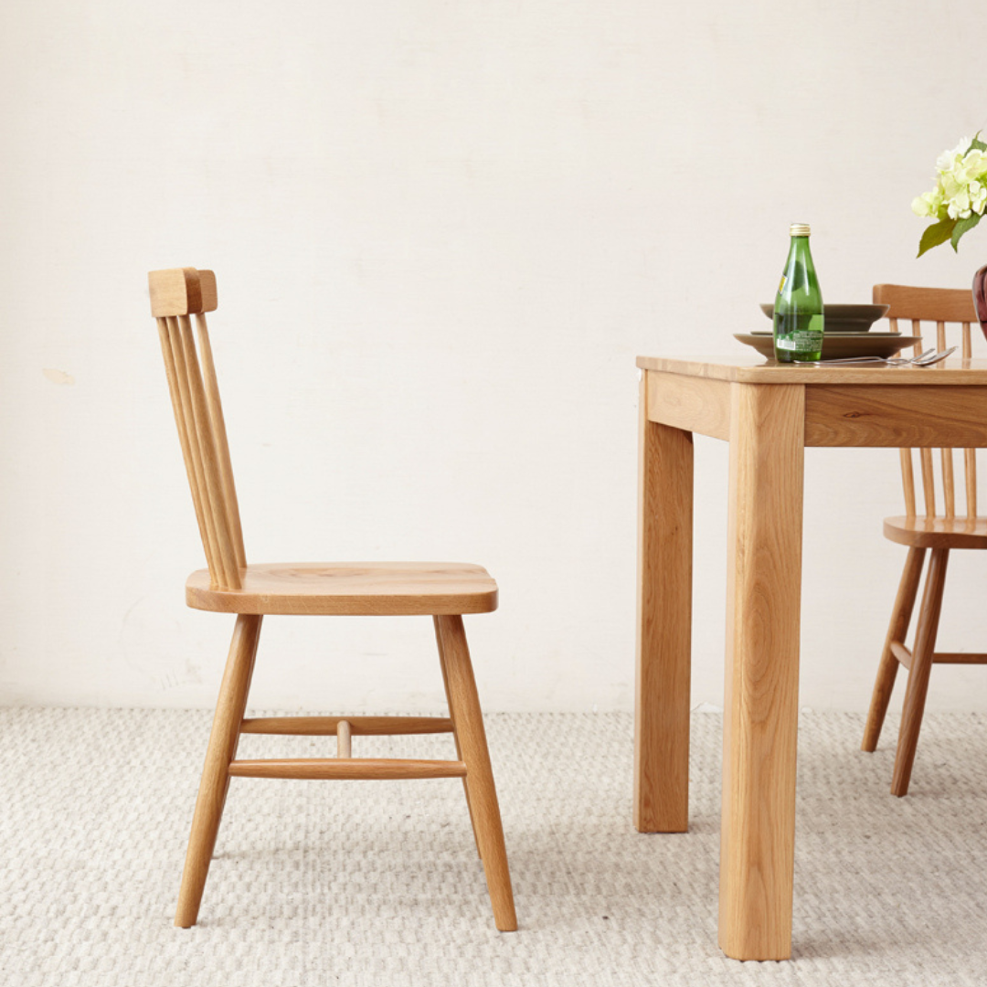 Apportez une touche de style polyvalent à votre salle à manger avec cette chaise. Fabriquée en chêne avec une finition naturelle rustique, elle s'harmonise parfaitement avec une variété de couleurs. Son dossier à lattes et ses pieds légèrement fuselés lui confèrent un charme classique. Offrez-vous un confort optimal pour vous détendre avec vos invités.
