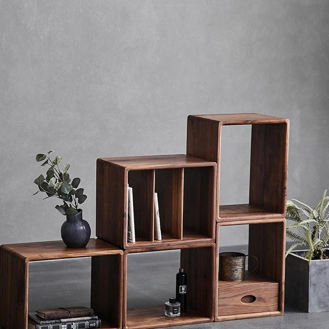 Inspiré de Lo Pan Procédé tenon-mortaise, ce placard empilable et créatif est parfait pour un intérieur moderne. Vous pouvez assembler tous les cubes pour créer un grand placard de rangement, ou les séparer pour créer deux petites tables d'appoint ou tables basses. Chaque module est fabriqué en pin de Nouvelle-Zélande de la plus haute qualité et est animé par un savoir-faire artisanal. Son utilisation systématique de techniques tenon-mortaise traditionnelles plutôt que de clous en est la preuve.