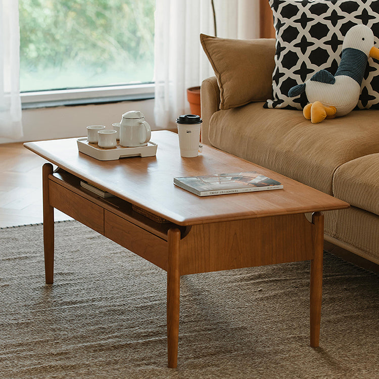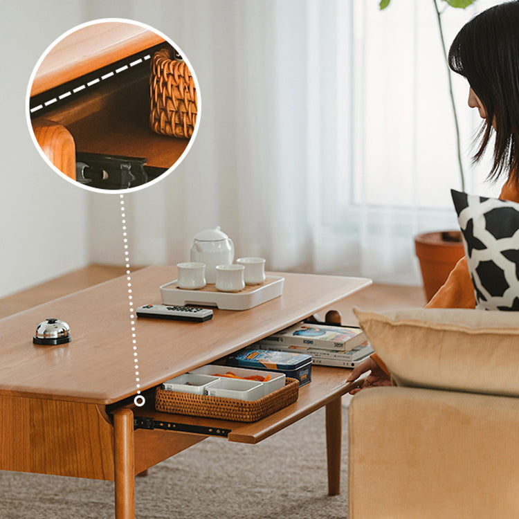 Dotée de caractère et d'un charme rustique, cette table basse multifonctionnelle est idéale pour les intérieurs contemporains comme pour les maisons de campagne modernes. Fabriquée en merisier massif, sa structure se distingue par un panneau coulissant dissimulé pour y poser des livres ou autres objets. De plus, sa finition bois patiné lui confère une allure unique. Elle offre un espace de rangement sur le dessus et deux tiroirs pour ranger vos essentiels à l'abri des regards.