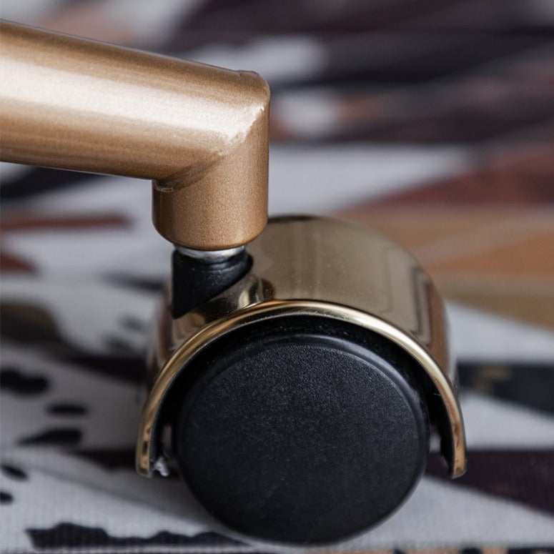 Cette chaise repose sur un piètement en métal doré à cinq branches pour une mobilité optimale sur la moquette. Sans accoudoirs, elle est dotée d'un dossier incurvé en L et d'une assise carrée gainée de similicuir. Rembourrée de mousse à mémoire de forme, elle offre un excellent soutien. Son design pivotant facilite le passage d'un projet à l'autre. De plus, elle est équipée d'un levier de réglage de la hauteur d'assise et d'un mécanisme d'inclinaison pour un confort optimal.