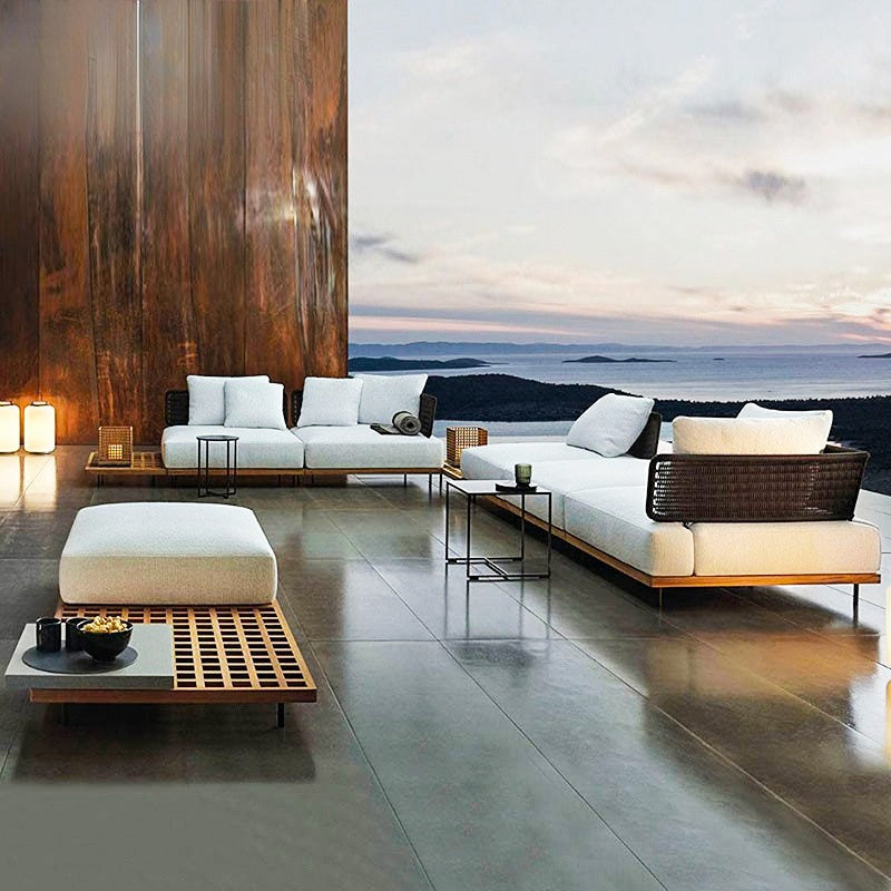 Tout espace extérieur bénéficie d'un ensemble d'assises confortable. Alliant un superbe mélange de matériaux à une structure tout en courbes, notre ensemble de conversation multijoueur sera un atout précieux pour votre espace extérieur. Des coussins imperméables à la structure en teck avec finitions en osier, ce superbe ensemble de conversation offre une durabilité inégalée et un confort raffiné, un atout de choix pour tout espace extérieur. Avec son charme et sa fonctionnalité indéniables, cet ensemble s'intégrera parfaitement à votre décoration extérieure.