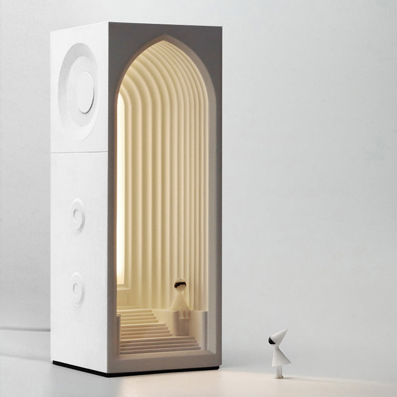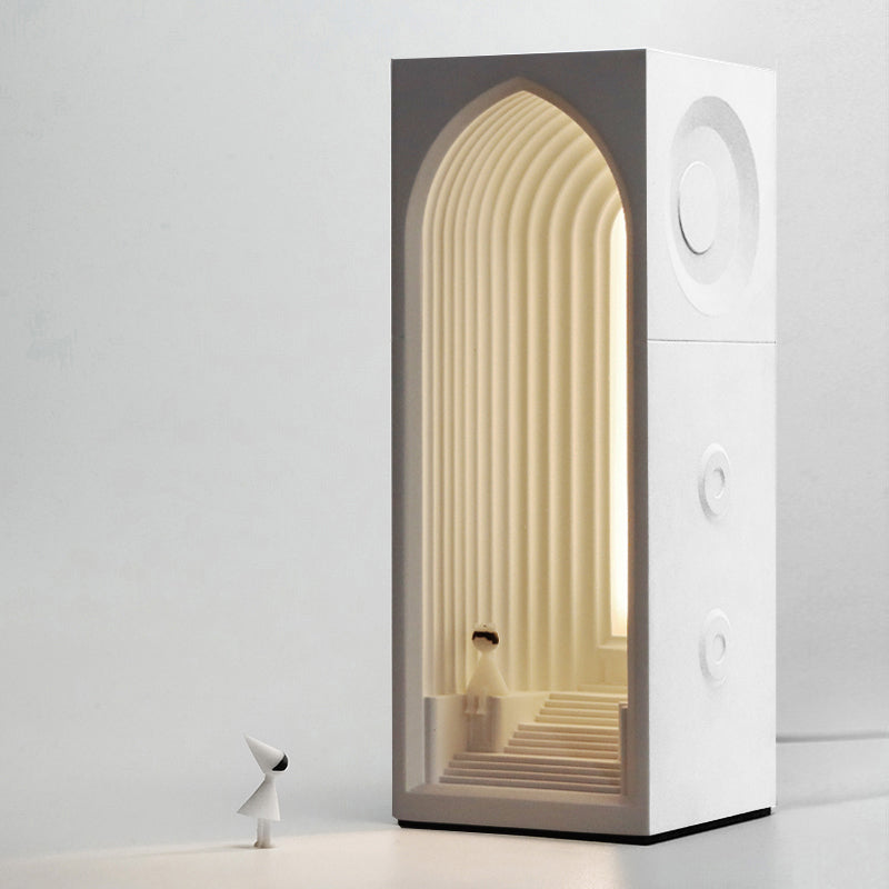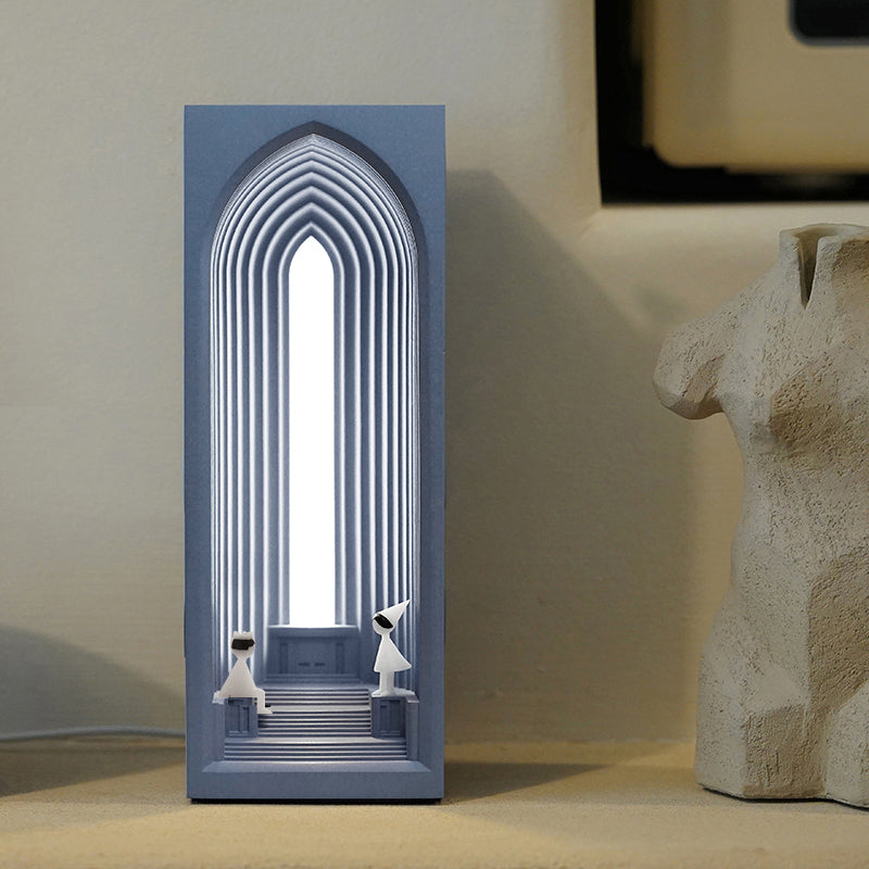 Charmante lampe de table pour un salon ou un bureau, ce modèle représente des personnages montant un escalier en colimaçon. Offrez-la à vos proches. Elle offre non seulement un bel effet lumineux, mais aussi un bel effet décoratif.