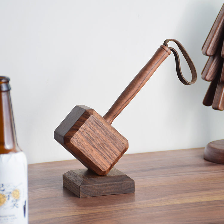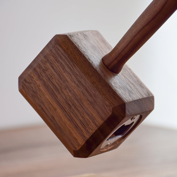 Décapsuleur astucieusement dissimulé sous le couvercle. L'aimant intégré assure une fixation solide de la base et du marteau. Fabriqué à la main, ce décapsuleur de collection est non seulement fonctionnel et esthétique, mais aussi amusant.