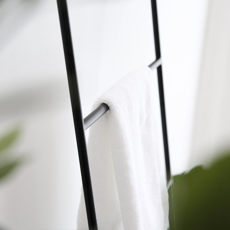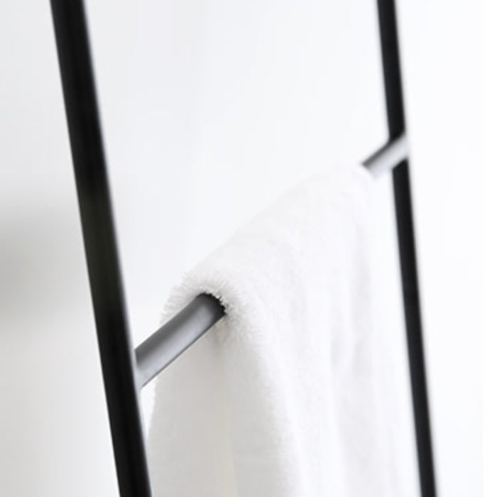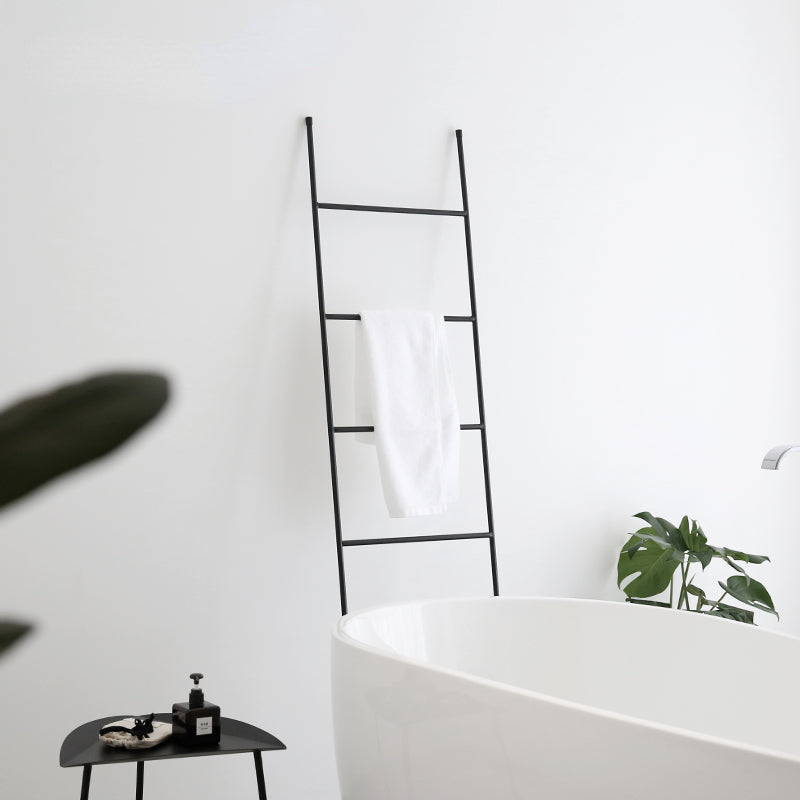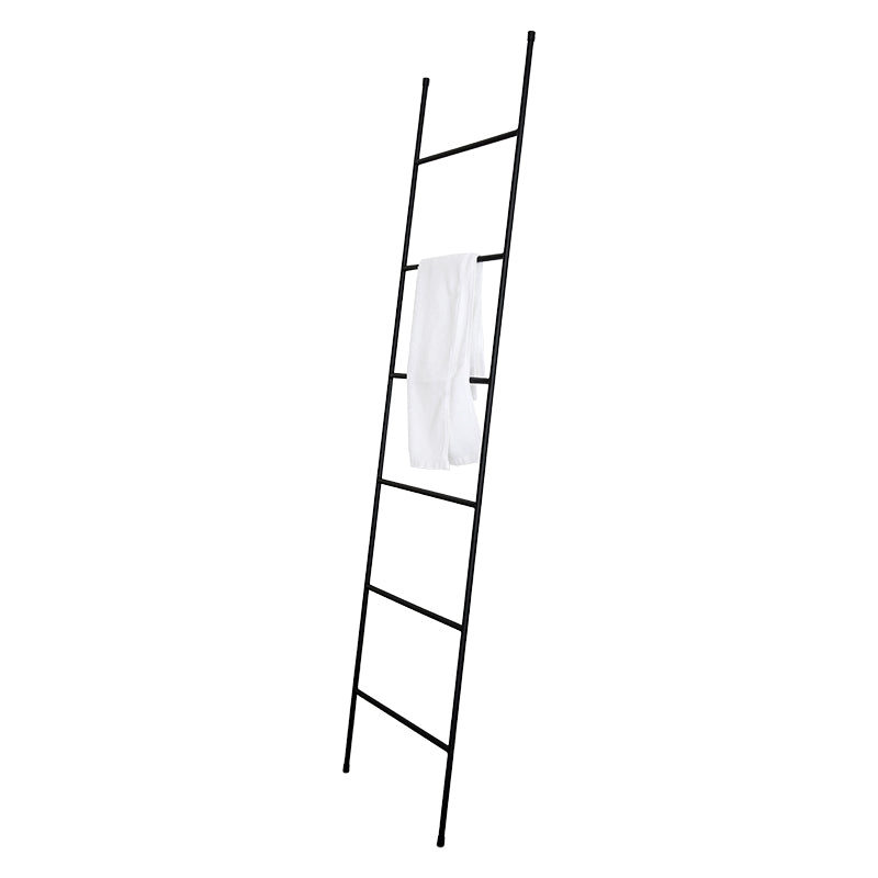 Cette échelle à couvertures, élégante et inclinable, constitue un rangement élégant et pratique dans n'importe quelle pièce. Gardez vos couvertures, serviettes ou vêtements à portée de main tout en ajoutant un meuble tendance à votre espace. Les lignes épurées et symétriques de ce cadre élégant en acier noir sont un véritable plaisir pour les yeux, tandis que ses six barreaux offrent un rangement instantané.