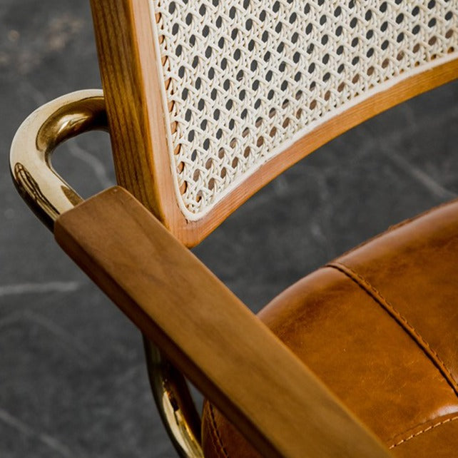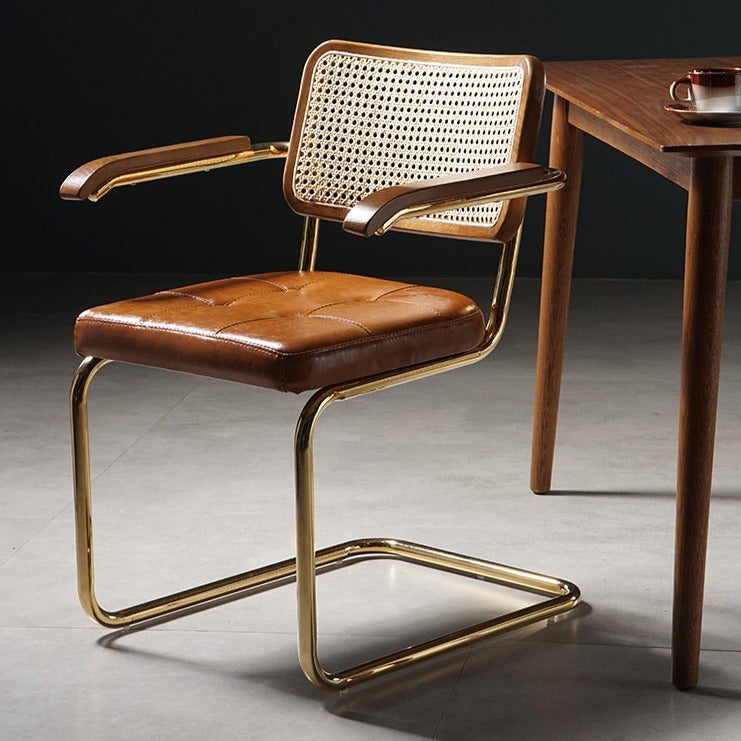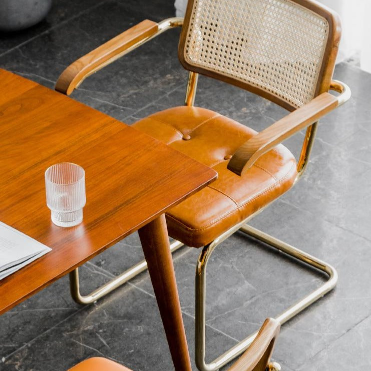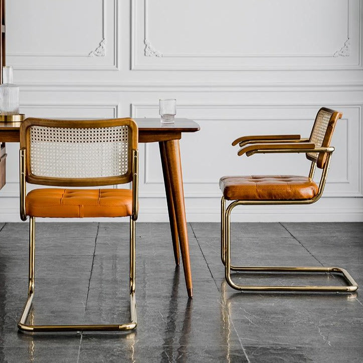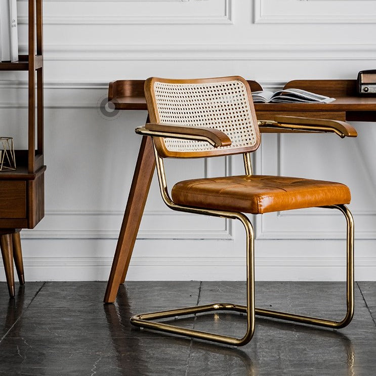 Cette chaise de salle à manger en rotin est dotée d'une structure en métal pour une durabilité accrue et d'un dossier en rotin naturel tressé, idéal pour une ambiance extérieure ou pour s'intégrer harmonieusement à votre décoration intérieure. Son assise en similicuir rembourrée de mousse offre un style Mid-Century confortable et élégant. Apportez cette chaise chez vous pour une touche de savoir-faire et de style.