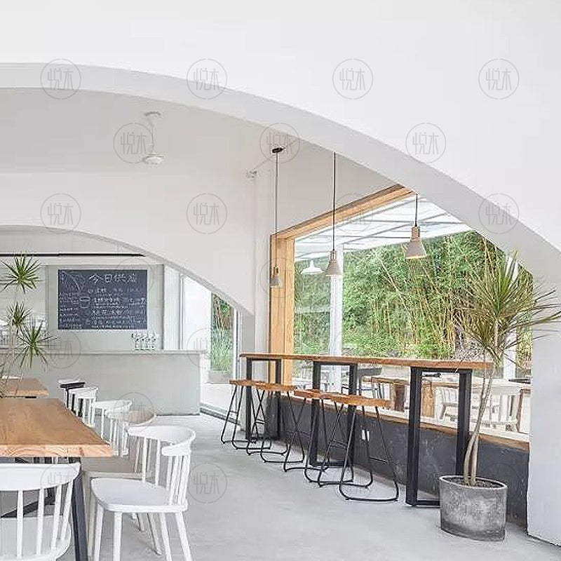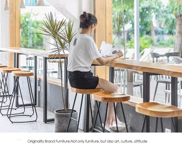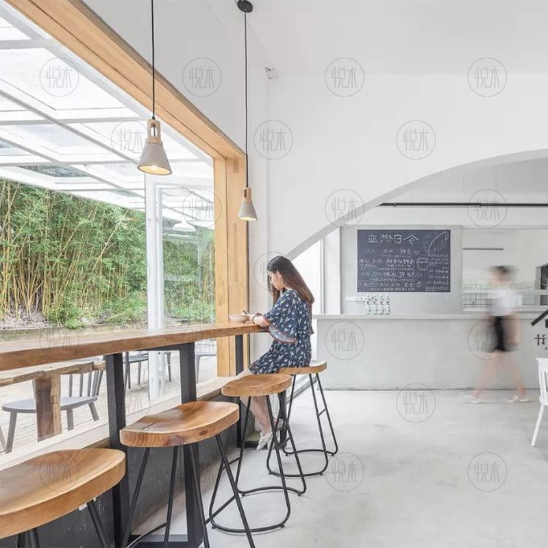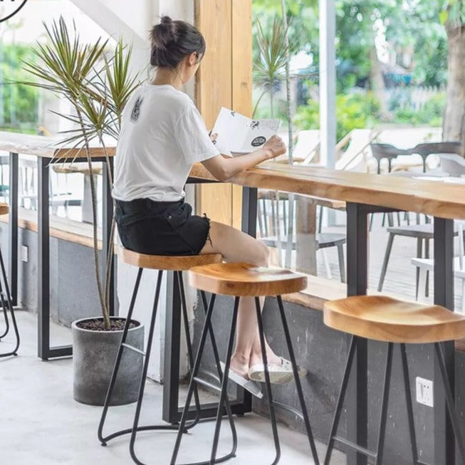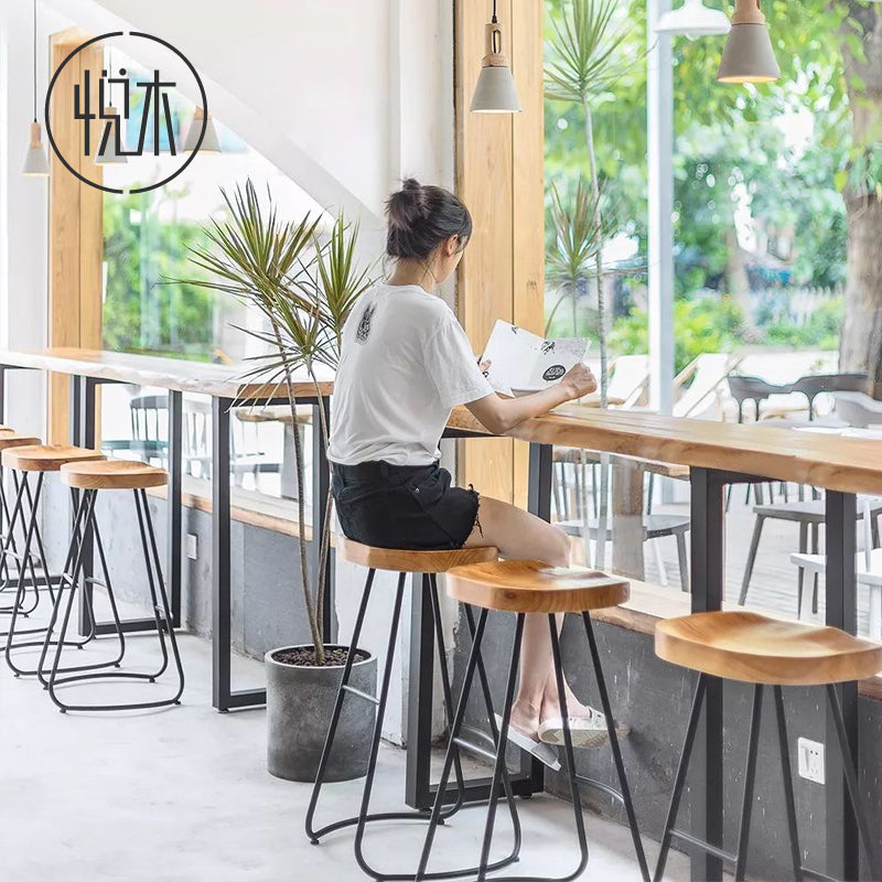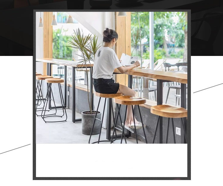 Table de bar Madeleine en bois massif Live Edge Table de bar en bois massif de style nordique pour la maison, table à manger simple et haute en fer forgé, longue table de bar, table de café et chaises