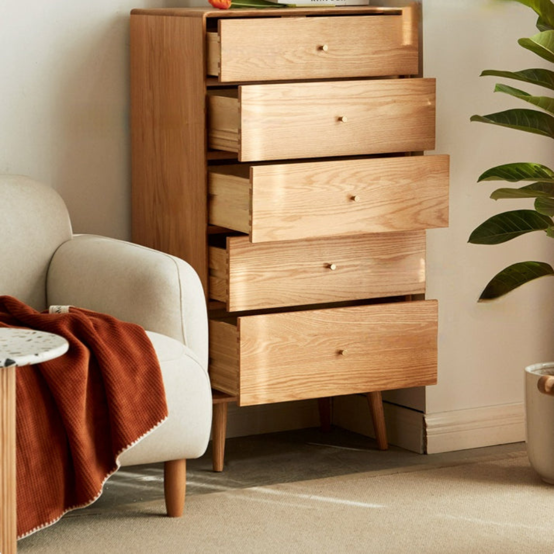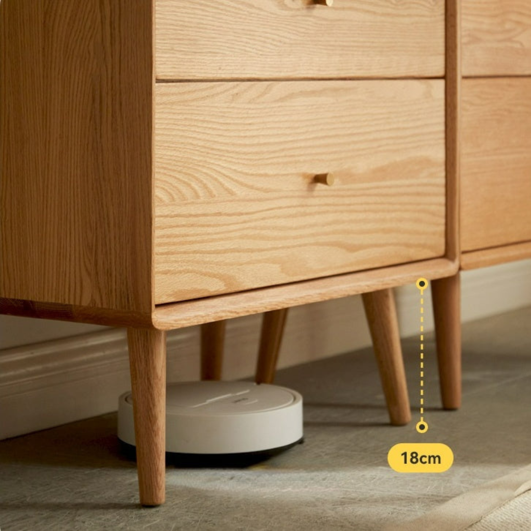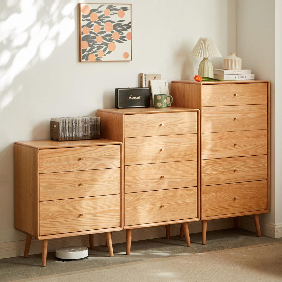 Le design moderne du milieu du siècle et le style traditionnel s'harmonisent parfaitement dans cette commode à tiroirs. Des lignes épurées et quatre pieds coniques à chevilles créent une silhouette carrée. Chaque tiroir est doté de poignées métalliques pour offrir un espace de rangement généreux pour vos chemises, chaussettes, pulls et jeans, tandis que la surface lisse du plateau offre un support idéal pour une station de charge ou une lampe élégante.